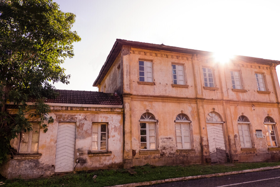 Construída em 1898 em um terreno de esquina, com alvenaria de tijolos feitos manualmente e porão de pedras coletadas nas imediações. Foi a primeira Escola de Santa Tereza e também a residência do professor Felice Battista Montanari, nascido aos 14.10.1860 em Gualtieri, Provincia di Reggio nell’Emilia, Itália. Veio para o Brasil em 1887 com a esposa e filhos, estabelecendo-se inicialmente no lote 136 da Linha Leopoldina. Por volta de 1896 mudou-se para Santa Tereza onde exerceu a atividade de professor, representante de banco e dos Correios. Foi correspondente do Jornal Il Corriere D’Italia de Bento Gonçalves, quando realizou relatos precisos e surpreendentes do cotidiano da Vila nas primeiras décadas do século XX, além de ensinar a língua italiana. Após o fechamento da escola, em 1927, a casa foi transformada em agência do Banco Nacional do Comércio. Casado duas vezes, teve 12 filhos com Maria Rosa Anunziata e, em segunda núpcias, com Maria Botta. Em 1934 transferiu-se para Serafina Corrêa e seu neto, Sr. Amantino Lucindo Montanari, foi o primeiro prefeito daquele município criado em 22.07.1960. Conhecido também como “Félix” Montanari, foi um homem idealista, convicto de suas ideias, disseminou valores e viveu intensamente a sua época. Lote 38 norte.