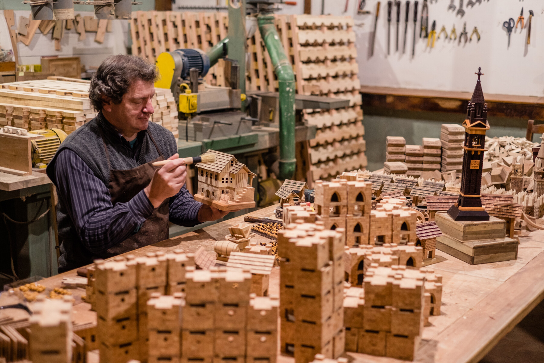 Além de esculpir a miniatura da torre da Igreja de Santa Tereza, passou a fazer também o forno à lenha (com o pão), o moedor de uva, o moedor de cana (tortcho), o poço de água e outras obras.